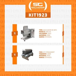 O Kit para Estrogonofe/strogonoff alcança a potência de 0,33 CV, garantindo uma produção de corte de 400 kg/h de carne. O equipamento é feito com alumínio, aço inoxidável e plástico atóxico de alta durabilidade, todos considerados como materiais nobres.
