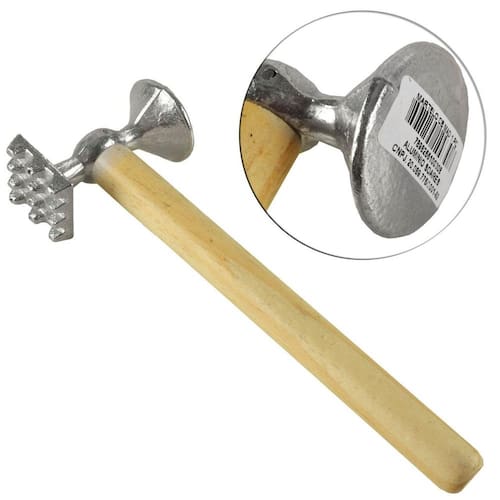 Amaciador de Carne Madeira 21cm Martelo O Amaciador de Carne em Madeira 21cm – Modelo Martelo é um clássico indispensável na cozinha de quem valoriza praticidade e sabor. Fabricado em madeira resistente, ele oferece uma pegada confortável e firme, ideal para amaciar cortes de carne e facilitar o preparo de pratos mais suculentos e bem temperados.\nCom dupla face funcional, o lado texturizado ajuda a quebrar as fibras da carne, deixando-a mais macia, enquanto o lado liso serve para nivelar e dar o toque final ao corte. Leve e fácil de manusear, o martelo de madeira é ideal para carnes vermelhas, aves e suínos, além de ser uma ótima opção para quem prefere utensílios mais naturais e duráveis.\nSeu design tradicional combina com qualquer cozinha, e a estrutura de 21cm oferece o equilíbrio perfeito entre desempenho e praticidade. Especificações: Marca : M.F.N ALUM Tipo de material : Madeira e Metal Cores ou Estampa : Prata Dimensões do Produto : 22,5 X 7,5 X 2,5 CM Peso Bruto (Gramas) : 0.116 O que vem na embalagem 1 Amaciador de Carne Madeira 21cm Martelo Marca: Não Informado