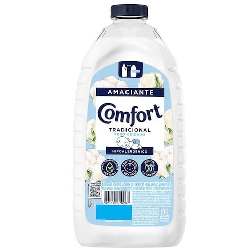 O Amaciante Diluído Comfort Tradicional Puro Cuidado tem a fragrância suave que você já conhece, pensada para não irritar a pele delicada. O Amaciante Puro Cuidado garante maciez para as roupas de toda a família, inclusive as roupinhas dos bebês, deixando-as mais leves e confortáveis de usar. Com o toque suave, o Amaciante deixa as suas peças mais fáceis de passar e suavemente perfumadas.