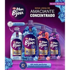 O Amaciante Concentrado Mon Bijou Cuidado - 1L Rende até 4 Litros é ideal para quem deseja roupas macias, bem cuidadas e com um perfume delicado. Sua fórmula foi especialmente desenvolvida para garantir a suavidade dos tecidos, mantendo-os macios por mais tempo, sem perder a durabilidade. Características principais: