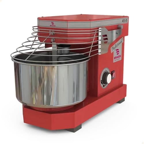 A Amassadeira Espiral Braesi AES-05 tem capacidade para 3 kg de farinha e 5 kg de massa pronta, ideal para produções médias de pães, pizzas, pastéis e outras massas.