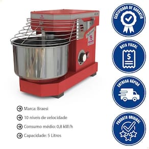 Amassadeira Espiral Braesi Aes-05 Bivolt 5kg 10 Velocidade Vermelha B14100