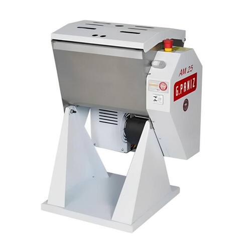 - Amassadeira am25 semi rapida para preparar massas de pizza, pão, cuca, biscoito, macarrão, panqueca e similares - Corpo basculante em aço inox - Paredes laterais em alumínio fundido - Pás fixas amassadoras em ferro fundido nodular, com acabamento em estanho, montadas em mancais rolamentados - Motor potente e de alto desempenho. - Rotação da pá 74rpm - Capacidade de máxima de massa pronta 25 Kg - Acabamento em pintura epóxi - Batedores em ferro fundido - Cuba basculante para facilitar a retirada de massa - Carenagem em chapa de aço - Sistema de segurança conforme NR-12 - Botão de emergência - Botão reset - Botão liga e desliga - Chave geral com bloqueio - Gabinete fechado