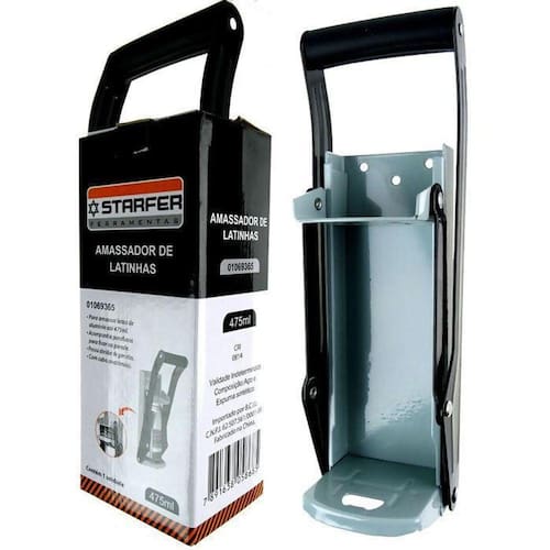 Amassador e abridor Latas e Latão Alumínio 475ml Starfer Fabricado em aço resistente, também funciona como abridor de garrafas. Ideal para amassar latinhas de 475ml. Produto em aço