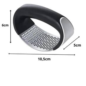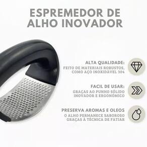 Amassador esmagador de alho manual inox cozinha triturador Bem vindo a nossa loja A lualki store tem os melhores produtos para seu uso. Se atentamos para total satisfação do cliente. O espremedor amassador de alho é essencial para agilizar o preparo de receitas, melhorar o aproveitamento do alimento e evitar o contato das mãos com o alho. Pode ser Utilizado também para triturar pimentas, alguns tipos de castanhas e gengibre. Para utilizar, basta posicionar o alho já descascado sobre uma superfície plana e rígida e pressionar fazendo movimento tipo gangorra. Características do produto: - não deixa cheiro na mão; - alta eficiência; - fácil de lavar; - super resistente; - feito em inox. Especificações técnicas: - marca: topchef - modelo: triturador de alho - cor: preto - material: plástico e aço inox. Dimensões do produto: - altura: 6cm - largura: 5cm - comprimento: 10,5cm - peso: 0,65gr Conteúdo da embalagem: - 1 triturador de alho