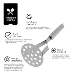 Com um design ergonômico e prático, este amassador é fácil de manusear e proporciona resultados incríveis. Sua estrutura reforçada e design inovador garantem durabilidade e estilo na sua cozinha. Possui orifícios em tamanhos circulares que facilitam a pressão durante o uso, tornando o processo mais eficaz.