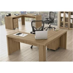 Ambiente Para Home Office 06 Peças Amendoa - Tecno Mobili O Ambiente para Home Office 06 Peças é uma escolha perfeita para seu escritório. Possui 02 mesas de canto e 02 gaveteiros com 03 gavetas com corrediças metálicas reforçadas que facilitam na organização. Os 02 armários possuem 04 prateleiras cada para uma melhor organização de arquivos e documentos. Compre já! Ambiente composto por: 02 ME4116. 02 ME4108. 02 ME4115.