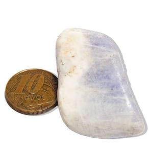 Ambligonita Roxa Rolada, uma pedra rara e única para colecionadores e esotéricos. Com tonalidades que variam do branco ao roxo, esta pedra natural é ideal para energização, meditação e decoração.