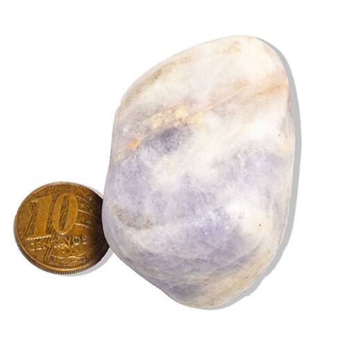 Ambligonita Roxa Rolada, uma pedra rara e única para colecionadores e esotéricos. Com tonalidades que variam do branco ao roxo, esta pedra natural é ideal para energização, meditação e decoração.