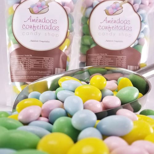 Amêndoas Confeitadas Coloridas Bebê Classic 500g Nossas amêndoas confeitadas coloridas bebê classic são confeccionadas com amêndoas frescas, cobertas com um delicioso confeito colorido bebê a base de açúcar. Possuem confeito macio, acabamento polido e sabor doce. No caso das amêndoas confeitadas comprar a tonalidade certa faz total diferença Segundo a tradição, as amêndoas simbolizam os votos que os visitantes desejam aos pais no momento do nascimento. Por essa razão, as mães preferem as cores suaves para lembrancinha de batizado e maternidade. Fabricante: Amêndoas Confeitadas Candy Shop Distribuído por: Malulo Store Quantidade: 500g Validade: 1 Ano Marca: Amêndoas Conf. Candy Shop