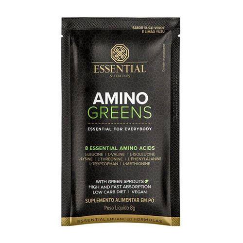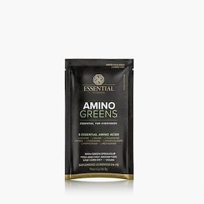 Amino Greens 8g - Essential Nutrition Amino Greens é o mais novo lançamento da Essential Nutrition. Um suplemento a base de 8 aminoácidos leucina, valina, isoleucina, lisina, treonina, fenilalanina, triptofano e metionina que visam equilibrar diversos processos biológicos no organismo, afinal, os aminiácidos se fazem presentes em músculos, tecidos, anticorpos e hormônios, sendo, fundamental suplementá-los. Estes 8 aminoácidos presentes na fórmula, Amino Greens, são essenciais ou seja, não produzidos pelo organismo. São também, blocos construtores das proteínas, substância fundamental ao nosso corpo principalmente, quando se fala em desenvolvimento muscular - principal meta dos praticantes de exercícios.Benefícios:8 aminoácidos;5g de aminoácidos por porção; Plantas germinadas; Vegano; Low calorie; Absorção rápida e eficiente. Auxilia no ganho de massa muscular; Recuperação muscular mais rápida; Aumento da Performance; Manutenção da massa magra. Ean: 0040232944314