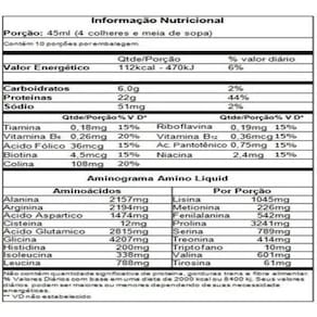 O Amino Science Liquid 2222g possui 25 gramas de proteína 100% Colágeno Hidrolisado por porção em sua melhor forma de absorção, sendo exclusivo, pois contém as três combinações de aminoácidos: Aminoácidos de Cadeia Ramificada, Forma Livre e Cadeia Peptídica.Uso Sugerido: Ingerir uma porção 4 colheres e meia de sopa antes ou após os exercícios físicos, ou entre as refeições, ou conforme orientação de um nutricionista e/ou médico nutrólogo.