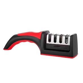 1 - coloque o afiador em uma plataforma, com a mão esquerda segure o cabo, e com a mão direita coloque a faca verticalmente na parte afiar n1 , com força apropriada e com a ponta da faca para baixo, puxar sempre para trás nunca para frente . Repita o processo várias vezes até que sua faca fique totalmente afiada. 2 - após o processo acima, coloque a faca no parte nº2 puxando a faca para trás como no processo anterior . 3- e para dar acabamento, repita o mesmo processo na parte nº3 . Obs - para afiar tesouras, utilize apenas a parte nº4 . Nota - verifique a posição ou ângulo da faca antes de afiar. Características: