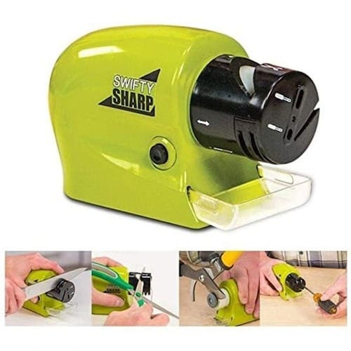 - Equipado com uma pedra de amolar de nível profissional, de alta velocidade, ele afia e restaura o fio da navalha em qualquer lâmina em apenas alguns segundos, desde facas e tesouras e ferramentas manuais pequenas.