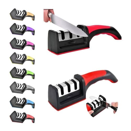Amolador de Facas e Afiador com 03 Opções Amolador e Afiador de Facas 3 Opções de Regulagem para Afiar ===================================== Contém: 01 Unidade Especificações: - Medida: 07cm x 05cm x 22cm - Material: Aço Inoxidável, Plástico, Cerâmica e Borracha - 03 Opções de Afiação - Peso: 165 gramas - Cor enviada de forma aleatória Opções: 1- Preparar 2- Afiar 3- Polir Além de recuperar o fio com rapidez e facilidade, ainda possui pedra de cerâmica que dá polimento final em suas facas. ATENÇÃO - Não deve ser em facas de cerâmica. - Não nos responsabilizamos por danos causados a sua faca - O produto não danifica facas, apenas se for de forma incorreta. Cuidados ao utilizar o equipamento: - Não utilizar o afiador em facas serrilhadas. - Para evitar danificar a faca recomendamos afia-las de modo suave - Evitar fazer movimentos para frente e para trás - Não deixe submerso na água. ===================================== Devido à diferença entre monitores e iluminação diferentes, pode haver variação na tonalidade apresentada no anúncio. Medidas muito aproximadas. Marca: Não Informado