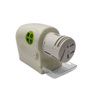Amolador de Facas motorizado, produto de ótima qualidade e necessidade para manter suas lâminas de aço inox sempre bem afiadas, este produto é resistente e prático de transportar e guardar. Artigo indispensável na cozinha, tudo para facilitar o seu dia a dia. Possui uma pedra rotativa de nível profissional e alta velocidade para afiar lâminas.Guia embutido que mantém a lâmina em um ângulo perfeito.Bandeja coletora para aparas de metal.Funciona com 4 pilhas AAA(Não inclusas) Medidas: comprimento 12 cm / Altura 25 cm / Largura 15 cm Peso: 150 g