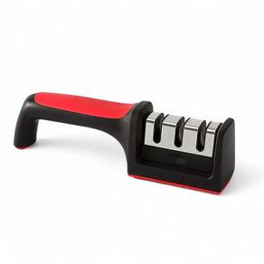 Amolador Vermelho 3 Níveis para Facas Tesouras Mantenha suas facas e tesouras sempre afiadas com este afiador manual 3 em 1. Ideal para uso doméstico ou , ele combina praticidade, segurança e durabilidade. Com estrutura resistente e sistema de afiação em três etapas, proporciona excelente resultado com mínimo esforço. Destaques do Produto: - Design ergonômico: cabo confortável que garante firmeza e segurança durante o uso; - Base estável para afiação segura, evitando acidentes e deslizamentos; - Compacto, leve e fácil de guardar ou transportar. Sistema 3 em 1 com três fases de afiação: Fase 1 - Preparação da lâmina com ajuste do fio; Fase 2 - Afiação precisa para restaurar o corte; Fase 3 - Polimento final com pedra de cerâmica; Especificações Técnicas: - Tipo: Afiador manual 3 em 1; - Cor: Vermelho e Preto; - Aplicações: Facas lisas e tesouras não compatível com facas serrilhadas ou de cerâmica ; - Materiais: Aço inoxidável, plástico ABS e pedras de cerâmica; - Dimensões aproximadas: 21 cm de comprimento x 6 cm de altura x 5 cm de largura; - Cor: Preta com detalhes em prata. Itens Inclusos: - 1x Afiador Manual 3 em 1 para Facas e Tesouras. Instruções de uso: - Deslize suavemente a lâmina por cada estágio na direção indicada. Evite movimentos de vai e vem e não submergir o produto em água. Com esse afiador, você garante cortes mais precisos e seguros na sua rotina culinária Marca: Não Informado