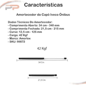 Conteúdo da embalagem: 01 amortecedor do capô linha Iveco Ônibus
