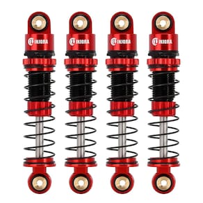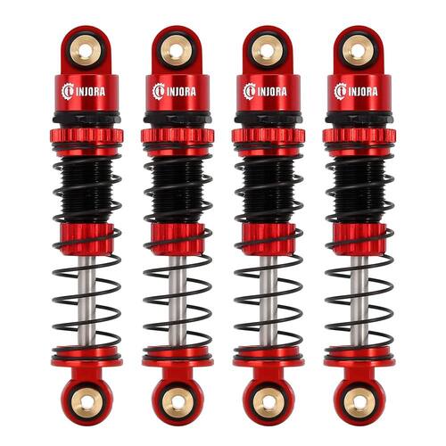 Observação: Use óleo de choque (não incluído) para adicionar apenas óleo suficiente para um revestimento pesado. Não encha totalmente o corpo do choque. Especificações: Material: Alumínio Cor: vermelho e preto Comprimento total: 44,2 mm/1,74 pol. Comprimento olho no olho: 39 mm/1,54 pol. Comprimento comprimido: 27,5 mm/1,08 pol (sem óleo) Viagem (sem óleo): 10,2 mm/0,4 pol. Adequado para: Axial SCX24, FMS FCX24M ou outro carro mini/micro rastreador Conteúdo da embalagem: Amortecedores de alumínio ajustáveis de 4 x 39 mm - Estes amortecedores de 39 mm são usinados a partir de alumínio e apresentam corpos roscados para ajustes rápidos de pré-carga. - Internamente, eles usam óleo de choque (não incluído) em vez do amortecimento de fricção típico e empregam vedações de bexiga para amortecimento de rebote consistente. - Três taxas de mola estão incluídas, permitindo que você ajuste esses amortecedores no seu chassi. - Uma variedade de cores para você escolher, que podem ser combinadas com o seu carro de rastreamento SCX24 RC. - Os amortecedores de viagem longos rosqueados de alumínio INJORA são uma ótima opção para adicionar viagens ao seu Axial SCX24 ou FMS FCX24M.