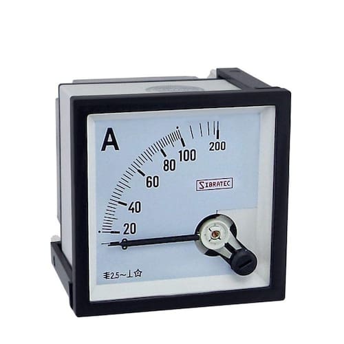 Os amperímetros analógicos SIBRATEC são apropriados para utilização em painéis elétricos para visualização da corrente elétrica. São robustos, mostrador de fácil visualização e alta precisão. Possuem sistema de amortecimento feito por mancal siliconado, o que evita choques pesados no final de escala.