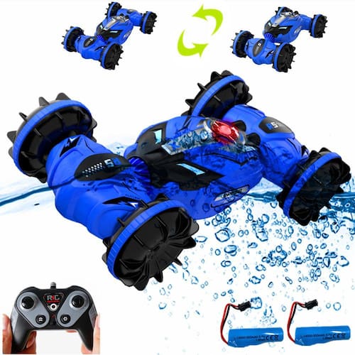 - Nosso carro acrobático RC apresenta um design impermeável e durável, permitindo que você se divirta sem preocupações na piscina ou na praia, e vem com 2 baterias lipo recarregáveis para diversão duradoura (20 minutos cada).