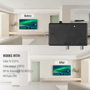 30db, amplificador de distribuição, amplificador de sinal de antena de TV, amplificador/ganho ajustável, NTSC, ATSC, FM, UHF, VHF - 870 MHz, adaptador de cabo coaxial RG-6 de 1 pé+16 pés