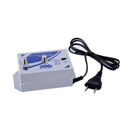 Amplificador De Linha Vhf/uhf 15db Pqal1500 Proeletronic Amplificador com ganho de 15 dB utilizado em instalações domésticas e prediais de pequeno porte para compensar perdas no sistema VHF/UHF/CATV. características: preparado para o sinal digital; Alta confiabilidade; Compacto; Baixo consumo; Baixo custo; Caixa metálica com pintura eletrostática, que garante durabilidade e proteção contra interferências externas; Fonte bivolt integrada; Ótima resposta em frequência; Assistência técnica própria; Consagrado pela grande aceitação de instaladores e empresas de manutenção de condomínios; Fabricação nacional com de fábrica. detalhes: frequência: 54890 MHz Alimentação: 110/220 VAC Dimensões: 135 x 70 x 38 mm Peso: 356 g Conectores: Tipo F fêmea Marca: Não Informado Ean: 7898419480055