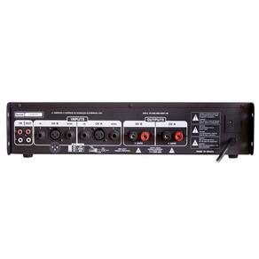 Especificações Técnicas CLASSE D Potência máxima total: 550W RMS / 4 Ohms Potência máxima por canal: 275W RMS / 4 Ohms Aperitivo entradas cha e chb: 02 P10 - 1 XLR em a e b: 01 RCA ST saídas saídas cha e chb: 02 BORNES fora - aeb: 01 RCA ST enviar: 02 P10 vu gráfico : 5 LEDS proteção: LED Overload / Curto fusível ampere: Fusível 8A consumo total: 660W capacitância da fonte: 9400uF resposta de freqüência: 10 Hz a 20K Hz impedância de freqüência: 10 KW, 10 Hz a 10 kHz poder vac: 127/220 Dimensões mm : H 110 X L 490 X P 243 peso kg : 6,3 Ean: 7898623882898