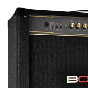 2 Alto-falantes de 10 100W RMS Exclusiva entrada para aplicativos de efeitos P3 de quatro terminais Fonte interna estabilizada de 1 Ampere para alimentação de pedais Controle de grave, médio e agudo para o canal limpo, distorção, efeitos app e auxiliar Ajustes de ganho e volume para o canal de distorção Ajuste de volume para o canal limpo, efeitos app e aux. Saída para fone de ouvido Saída de linha Entrada de send e return Entrada aux. Para conectar celular, notebook, etc Chave de acionamento do canal de distorção Proteção térmica do circuito de amplificação Alça de couro Cabo incluso para conexão de 3 pedais Acabamento em curvim preto e palha. Chave comutadora de tensão 110V ou 220V AC Peso Sem embalagem: 15Kg Com embalagem: 16,4Kg Dimensões Sem embalagem L x A x P : 58,5 x 51,5 x 27,5 cm Com embalagem L x A x P : 63 x 56,5 x 33 cm Homologação Anatel: 139892215089 Ean: 7908105300847
