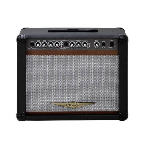Amplificador oneal para guitarra ocg-200-cr - 60 watts O ocg200 é um amplificador médio indicado para usos em diversas aplicações, com 60w rms e um falante de 10", possui som encorpado, com bom volume e projeção sonora. O ocg200 tem dois canais clean/limpo e drive/distorcido e vem acompanhado de um pedal de footswitch para que o guitarrista possa trocar os canais a distância. Outros itens importantes nesse amplificador são a saída de linha, loop de efeitos send/return para uso de efeitos externos e entrada auxiliar para conexão de aparelhos externos como um celular para tocar e aprender músicas, por exemplo. Especificações 60 watts rms 1 alto falante de 10" Controle de volume master Tecla de seleção clean/drive Controle de graves, presence e agudos Controle de ganho para o modo clean Controle de volume para o modo drive Controle de ganho para o modo drive Controle de balance para o modo drive soft/hard Tecla bright Entrada para pedal footswitch clean/drive Entradas para guitarra p10 1/4" Saída para fones de ouvido modo estudante que Automaticamente desligam os alto falantes Inserts send e return para utilização de efeitos externos Entrada auxiliar rca l & r com controle de volume Tomada auxiliar ac Saída de linha Seletor de tensão de rede120/220v Consumo máximo 111 watts Dimensões altura x largura x profundidade 400 x 490 x 230 mm Peso líquido 9,5 kg Fornecedor - oneal áudio Homologação Anatel: 087441811958