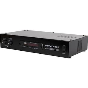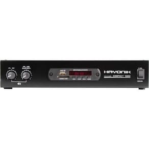 Amplificador hayonik compact 1000 80w rms com bluetooth O amplificador hayonik compact 1000 é um modelo versátil, prático e de fácil manuseio. Possui entrada usb, sd, aux rca, microfone, rádio fm e bluetooth. É leve, compacto e de fácil instalação. Além disso, ele é o modelo ideal para quem busca praticidade e qualidade por um baixo custo. Equalização:volume mic, volume aux Alimentação:bivolt Peso:1,76kg Consumo de energia:160va Classe:ab Canais:4 Potência:80w rms Impedância:4 ohms Entradas:p10 mono/rca Saídas:até 8 caixas de 8 ohms 2 por canal Dimensões:78 x 310 x 210mm Thd:0,05% Pesquisa:amplificadorhayonikamplificador compactpotencia Modos: usb, sd, bluetooth, fm Tensão de rede: 100 a 240vac 60hz Controle remoto: sim Sensibilidade: microfone/guitarra 15mv Auxiliar 250mv Conteúdo da embalagem: 01 amplificador compact 1000 01 manual do proprietário e o certificado de 01 controle remoto 01 bateria para controle remoto Homologação da anatel: 05 150 -18 - 11597 Homologação Anatel: 112572013224 Marca: Não Informado Ean: 7899638111713