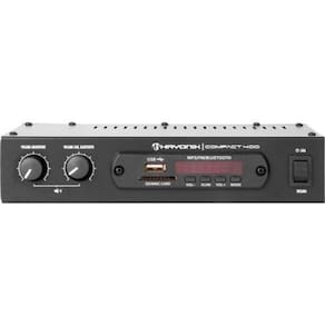 Amplificador hayonik compact 400 40w rms com bluetooth O amplificador hayonik compact 400 é um modelo versátil, prático e de fácil manuseio. Possui entrada usb, sd, aux rca, microfone, rádio fm e bluetooth. É leve, compacto e de fácil instalação. Além disso, ele é o modelo ideal para quem busca praticidade e qualidade por um baixo custo. Equalização:volume mic, volume aux Alimentação:bivolt Peso:0,8kg Consumo de energia:80va máximo Classe:ab Canais:4 Potência:40w rms Impedância:4 ohms Entradas:p10 mono/rca Saídas:até 4 caixas de 8 ohms 1 por canal Dimensões:215 x 52,5 x 117 mm Thd:0,05% Pesquisa:amplificador40wcompact400compact-400compact400 Modos: usb, sd, bluetooth, fm Tensão de rede: 100 a 240vac 60hz Controle remoto: sim Sensibilidade: microfone/guitarra 15mv Auxiliar 250mv Conteúdo da embalagem: 01 amplificador compact 400 01 manual do proprietário e o certificado de 01 controle remoto 01 bateria para controle remoto 01 fonte de alimentação 12vdc 3a Homologação da anatel: 05 150 -18 - 11597 Homologação Anatel: 112572013224 Marca: Não Informado