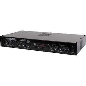 Amplificador hayonik ms4000 400w rms multisetores O amplificador para ambientes hayonik ms4000 é um modelo que permite ao usuário controlar individualmente o volume de até 4 setores. Com 400w de potência rms, é ideal para todos os tipos de ambiente. Possui entrada de microfone, entrada usb para pen-drive, rádio fm, conexão bluetooth, entrada sd card, entrada para microfone e duas entradas auxiliares rca para aparelhos eletrônicos. Possui também a função gongo eletrônico, que quando acionado emite um alerta para uma mensagem. Este amplificador permite ainda a expansão para mais canais conforme a necessidade do cliente. Utilizando-se o ems4000 hayonik. produto vendido separadamente . Equalização:grave, agudo, volume mic, volume aux, volume master Alimentação:bivolt Peso:1,70kg Consumo de energia:560 va Canais:4 Potência:400w rms Impedância:4 ohms Entradas:p10 mono/rca Saídas:até 2 caixas de 8 ohms por canal Dimensões:401 x 54,7 x 145,5mm Thd:0,05% Pesquisa:amplificadormulti setoreshayonikamplificador hayonik modos: usb, sd, bluetooth, fm tensão de rede: 127/220 - vac 60hz controle remoto: sim sensibilidade: microfone/guitarra 15mv linha: 775mv auxiliar 250mv gongo: sim Conteúdo da embalagem: 01 amplificador ms 4000 01 manual do proprietário e o certificado de 01 controle remoto 01 bateria para controle remoto Homologação Anatel: 112572013224 Marca: Não Informado