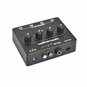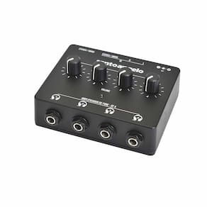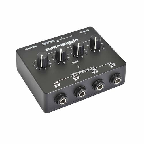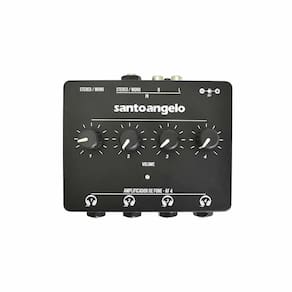 Amplificador Para Fones De Ouvido Mod Af4 Preto Descrição do produto: O af4 é mais um lançamento da linha de eletrônicos da santo angelo. O monitor de áudio profissional permite a distribuição de até dois sinais de áudio para até quatro ouvintes com controle de volume individual. Com excelente qualidade sonora e baixo ruído, o af4 se torna mais prático o compartilhamento de decisões de mixagem e gravações. Além disso, pode ser utilizado como: retorno para ensaios, lives e também na gravação de podcasts. O seu grande diferencial é a chave comutadora mono/estéreo, permitindo tanto trabalhar com p10 mono quanto p10 estéreo, além de uma entrada rca r/l. Este modelo acompanha fonte externa de alimentação 9v. Thd + n: 0,4% impedância de saída por canal: mínimo 10 impedância de entrada: 10k potência máxima de saída: 280mwCor: pretoAcompanha fonte 9v
