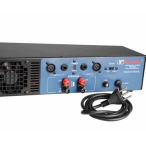 .Potência 1.200 Watts Rms .Impedancia 4 Ohms 1.200 Watts Rms Total sendo 600w rms por canal .Impendancia 8 Ohms 800 Watts Rms Total sendo 400w rms por canal .Proteção Contra Curto na Saida .Proteção Termica .Proteção Falante .Função Clip .Led Indicador - Clip .Led Indicador - Pwr .Led Indicador Protection .Conexão Jack Xlr .Borne .Cooler Inteligente .Sensibilidade - 775 Mv .Altura 100mm .Largura 482mm .Profundidade 482mm .Peso 12 Kg .Policarbonato Frente e Traseira .Chassi Aço Carbono 1.5mm .Pintura Preto Brilhante