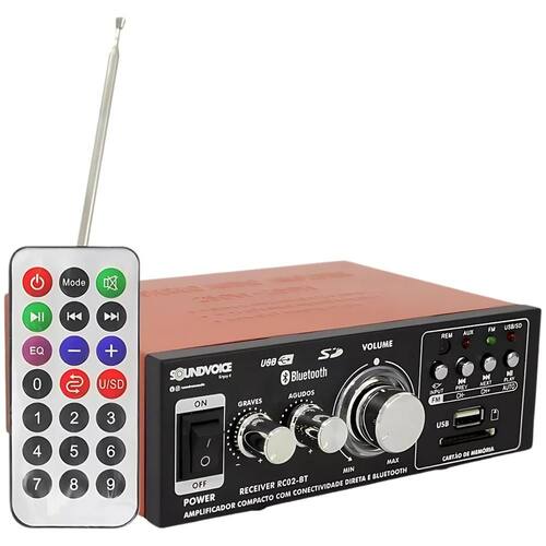 O Amplificador Receiver Soundvoice Rc02-Bt 60W Rms 4 Canais é a escolha ideal para aprimorar sua experiência sonora. Com suporte para reprodução de cartão SD, disco USB e rádio FM estéreo, você pode desfrutar de sua música favorita em diferentes formatos, incluindo MP3.