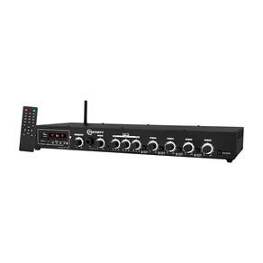 • Informações Adicionais: • Impedância das entradas AUX: 5K Ohms; • Impedância de entrada MIC: 2,2K Ohms; • IMPEDÂNCIA NOMINAL : 2 Ohms; • Sensibilidade das entradas AUX: 200 mV; • Sensibilidade do MIC: 10 mV; • ATUAÇÃO TÍPICA DO EQUALIZADOR DE 3 VIAS: Low (graves): ±12dB - 80Hz/Mid (médios): ±12dB - 2KHz/High (agudos): ±12dB - 12KHz; • Alimentação : 90 a 140V AC ou 190 a 240V AC; • Consumo máximo: 600W; • Consumo Stand by: 6W; • Sistema de Proteções: Proteção térmica, curto nas saídas e baixa impedância.; • Relação sinal/ruído: >90db; • Faixa de frequências FM: 87,5 MHz a 108MHz; • TENSÃO DE SAÍDA RMS NOMINAL DE CADA CANAL : 14,2Vrms / 28,4Vrms Bridged; • DISTORÇÃO HARMÔNICA TOTAL + RUÍDO: (THD + N) na potência nominal de cada canal (100W): <10%; • Fusível de proteção interno: 6A;