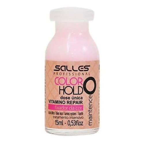 Ampola Color Hold Maintence Tratamento - Salles Profissional Ampola de tratamento para cabelos coloridos, fixa e potencializa a tonalidade, enquanto combate o o desbotamento e adiciona brilho intenso. Ajuda a recuperar a saúde capilar e equilibra a hidratação e a nutrição dos fios. Assim, o cabelo fica mais forte, macio e luminoso. Com essa poderosa dose, seus fios são hidratados e nutridos. Eles ganham brilho, resistência e maciez. A cor é protegida, mantida e intensificada Contem: Ácido Lático: Essa tecnologia avançada tem o poder de reforçar a fibra capilar e proporcionar uma profunda multi-reconstrução capilar até o córtex. Óleo Inca: Com uma poderosa combinação de ômega 3, 6 e 9, proporciona brilho intenso, restaura a camada lipídica, aumenta a resistência e a integridade, promove coesão e reestruturação aos fios danificados, promove proteção e flexibilidade aos fios. Lumini System: Ativo Inteligente que promove a retexturização da fibra capilar através do alinhamento dos fios, acarretando diminuição do frizz e do volume dos cabelos e aumento do brilho. Sua tecnologia permite efetiva proteção da cor dos cabelos tingidos. Manteiga de Karité: Recupera o brilho, suavidade e flexibilidade dos fios secos, tingidos ou com qualquer tipo de química e serve como protetor térmico. Filtro UV: protege os fios dos raios que desbotam a cor e envelhece o cabelo. Passo a Passo: Aplique a ampola por todo o cabelo limpo e úmido e massageie bem. Deixe agir por alguns minutos e enxágue. Para melhores resultados, peça ajuda ao seu cabeleireiro de confiança sobre o melhor modo de aplicação para a sua necessidade. Indicação: Para cabelos com coloração. Efeito: Seus fios hidratados e nutridos ganham brilho, resistência e maciez. A cor é protegida, mantida e intensificada Ean: 7898648919203