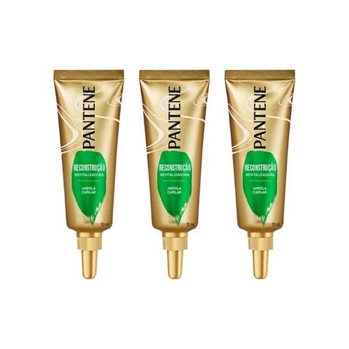 Ampola pantene reconstrução revitalizadora 15ml - kit com 3un Descrição: A ampola pantene reconstrução revitalizadora 15ml é um tratamento intensivo que proporciona uma revitalização completa aos cabelos danificados. Formulada com a poderosa tecnologia pro-v, esta ampola penetra profundamente nos fios, reparando danos causados por fatores externos e processos químicos. Em apenas 3 minutos, ela restaura a força, o brilho e a suavidade dos cabelos, deixando-os visivelmente mais saudáveis e resistentes. Indicada para todos os tipos de cabelo, especialmente aqueles que necessitam de reparação e hidratação profunda, a ampola pantene reconstrução revitalizadora é uma solução prática e eficaz para manter os cabelos sempre bonitos e bem cuidados. A embalagem de 15ml é ideal para um tratamento único e intenso, proporcionando resultados imediatos e duradouros. Experimente o poder de reconstrução da linha pantene e transforme a saúde dos seus cabelos com uma única aplicação. Modo de uso Lave os cabelos com shampoo e retire o excesso de água. Aplique a ampola de 15ml do meio até as pontas dos fios. Massageie suavemente para distribuir o produto de maneira uniforme. Deixe agir por 3 minutos. Enxágue abundantemente e finalize como de costume. Recomendado para uso conforme necessário, sempre que os cabelos precisarem de um cuidado extra. Marca: Não Informado