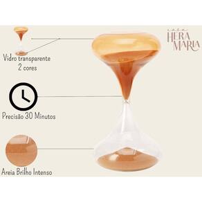 Ampulheta decorativa adorno sala escritório em vidro grande Considerado o objeto mais antigo do mundo para medir o tempo, as ampulhetas foram conquistando seu espaço na decoração, e, hoje fazem toda a diferença no espaço. Na composição do ambiente levam delicadeza e simbologia. Escolha sua cor preferia e dê aquele toque que faltava na sua casa tempo: 30 minutos.