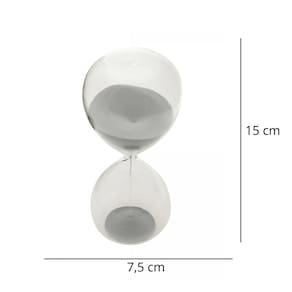 Com uma altura de 15 cm e largura e comprimento de 7,50 cm, essa ampulheta é feita com vidro de alta qualidade, garantindo durabilidade e um visual cativante. A areia fina que preenche a ampulheta cria um espetáculo visual único, marcando o tempo de forma elegante.