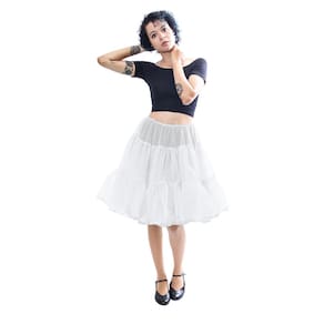 - A peça é feita de tecido de tule macio e fofo e a cintura estica generosamente. Combine sob vestidos vintage ou fantasias de espartilho.