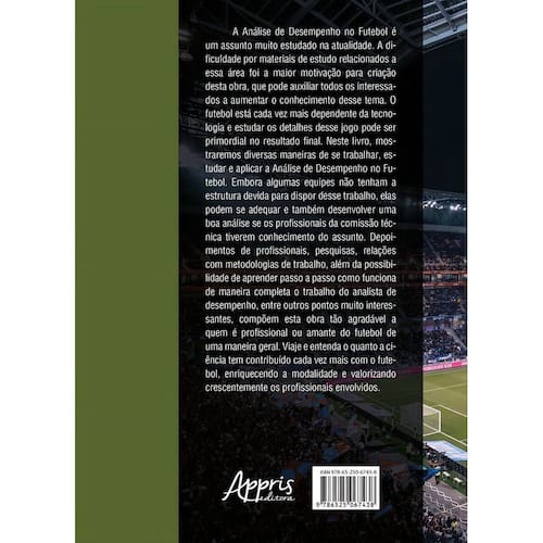A Análise de Desempenho no Futebol é um assunto muito estudado na atualidade. A dificuldade por materiais de estudo relacionados a essa área foi a maior motivação para criação desta obra, que pode auxiliar todos os interessados a aumentar o conhecimento desse tema. O futebol está cada vez mais dependente da tecnologia e estudar os detalhes desse jogo pode ser primordial no resultado final. Neste livro, mostraremos diversas maneiras de se trabalhar, estudar e aplicar a Análise de Desempenho no Futebol. Embora algumas equipes não tenham a estrutura devida para dispor desse trabalho, elas podem se adequar e também desenvolver uma boa análise se os profissionais da comissão técnica tiverem conhecimento do assunto. Depoimentos de profissionais, pesquisas, relações com metodologias de trabalho, além da possibilidade de aprender passo a passo como funciona de maneira completa o trabalho do analista de desempenho, entre outros pontos muito interessantes, compõem esta obra tão agradável a quem é profissional ou amante do futebol de uma maneira geral. Viaje e entenda o quanto a ciência tem contribuído cada vez mais com o futebol, enriquecendo a modalidade e valorizando crescentemente os profissionais envolvidos.