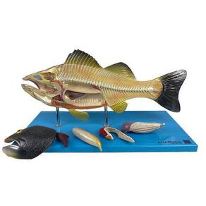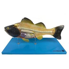 Modelo da anatomia do peixe em corte mediano. O modelo é dividido em 6 partes, apresentando com riqueza de detalhes as estruturas anatômicas da cabeça, coluna vertebral, vertebras, órgãos internos removíveis. Confeccionado em resina plástica de alta qualidade, montado sobre haste e base.Composto por:Boca;Cabeça removível;Olho;Coração;Brânquias;Fígado;Estômago;Rim;Vertebras;Barbatana ventrais;Espinhas;Intestino;O modelo TGD-0604 permite:O estudo da anatomia do peixe através do modelo fixo em placa;Visualizar anatomia da coluna vertebral;Remover e estudar o estomago, fígado, pâncreas e intestino;Remover e estudar a cabeça, cérebro, crânio, Brânquias.Acompanha:Manual do usuário em português.Embalagem: caixa de papelãoDimensão: 45 cm x 21 cm x 22 cmPeso:2,05 kgGarantia: 1 ano