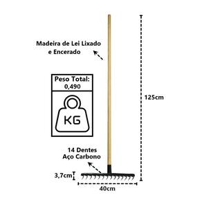 Ancinho 14 Dentes Aço Carbono Cabo Madeira Pra Limpeza 125cm