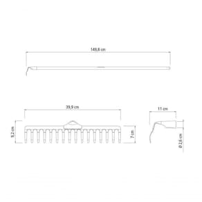 - O ancinho é temperado em todo o corpo da peça, proporcionando maior resistência e menor desgaste durante o uso;