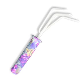Características * Aço de alta qualidade: maior durabilidade e resistência ao uso diário. * Cabo decorado e ergonômico: confortável para segurar e com visual exclusivo. * Ferramenta leve e prática: ideal para tarefas rápidas e precisas na jardinagem. * Tamanho compacto: facilita o manuseio e o armazenamento. * Largura do Ancinho: 11 cm * Altura total: 23 cm * Material do cabo: Plástico estampado * Material do Ancinho: Aço * Indicação de uso: Jardinagem em geral (vasos, canteiros, hortas)