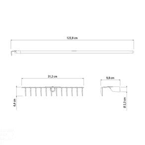 Cuide do solo com o ancinho estampado com 12 dentes Tramontina em aço com cabo de madeira 120 cm! Ele é produzido com corpo em aço carbono submetido ao processo de temperabilidade, característica que garante resistência e durabilidade ao utensílio. Ele ainda conta com cabo em madeira renovável de 120 centímetros para que você tenha mais conforto e execute seu trabalho com muito mais praticidade! Orientações - O ancinho é temperado em todo o corpo da peça, proporcionando maior resistência e menor desgaste durante o uso.- Fabricado em aço carbono especial de alta qualidade.- Possui 2,65 mm de espessura.- Possui 12 dentes.- Possui olho de 23 mm de diâmetro.- Recebe pintura eletrostática a pó, que tem uma melhor apresentação visual e maior proteção contra oxidação.- A tinta utilizada na pintura é isenta de metais pesados na sua composição, o que minimiza o impacto ambiental.- O cabo de 120 cm desta ferramenta, além de possuir ótima resistência, é produzido com madeira de origem renovável.- Cabo com acabamento envernizado, para um melhor acabamento e apresentação do produto. A camada protetora em verniz incolor realça sua tonalidade, concedendo brilho e um toque mais liso ao produto. Características Gerais EAN13 7891117027478 DUN14 17891117027475 NCM 8201.30.00 Peso Líquido 0,6000 kg. Peso Bruto 0,6200 kg. Metragem 0,002708 m³. Dimensões Embalagem (Compr. X Larg. X Alt.) 1.238x 312x 44 mm. Dimensões Produto (Compr. X Larg. X Alt.) 1.238x 312x 44 mm. Cor 1 000000 Hexa Observações - Por sua leveza e tamanho, o ancinho estampado se adapta as mais diversas atividades da agricultura, jardinagem e construção civil.Utilizado para recolher todo tipo de detrito, especialmente os mais leves, como folhas de árvores e pequenos galhos, ou ainda para nivelar a superfície, na preparação de hortas e jardins.- Para descarte dos produtos e embalagens siga as orientações de reciclagem vigentes.