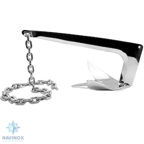 INFORMAÇÕES TÉCNICAS: • Marca: Navinox • Peso: 5 Kg • Material: Aço Inox 316 • Acabamento: Polido • Fundição: Molde SEM SOLDAS • Aplicação: Embarcações de 17 a 24 Pés