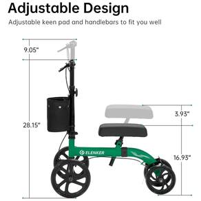 Nossa scooter de andador de joelho se adapta a adultos, recuperando se de uma cirurgia no pé, tornozelo ou perna, pé ou tornozelo quebrado. Com rodas de PVC de , freios de mão com travamento duplo ajustável e freios duplos nas rodas traseiras. Guidão e joelheira totalmente ajustáveis, altura do guidão 86 a , altura da joelheira 50 a Pesa 9 kg, ideal para uso interno e externo. capacidade de peso é de 136 kg. Enquanto a estrutura central frontal é projetada para dobrar o andador no tamanho mais compacto possível, fácil transporte e zenamento Marca: Não Informado